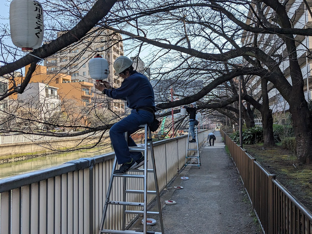 名入れ提灯の製作、破損提灯などの管理、会場内案内用看板の取付等、現場設営をさせていただきました。